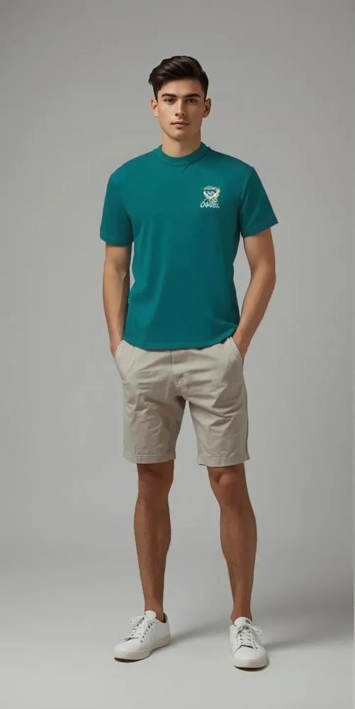 تيشرت بقصة عادية ، راحة وأناقة في نفس الوقت. تعطيك ستايل شبابي كاجوال، وتخليك تلبسه بأي مشوار وانت واثق. القماش ناعم وخفيف، ما يضايق ولا يسبب حرارة، يعني مناسب لجوّنا.