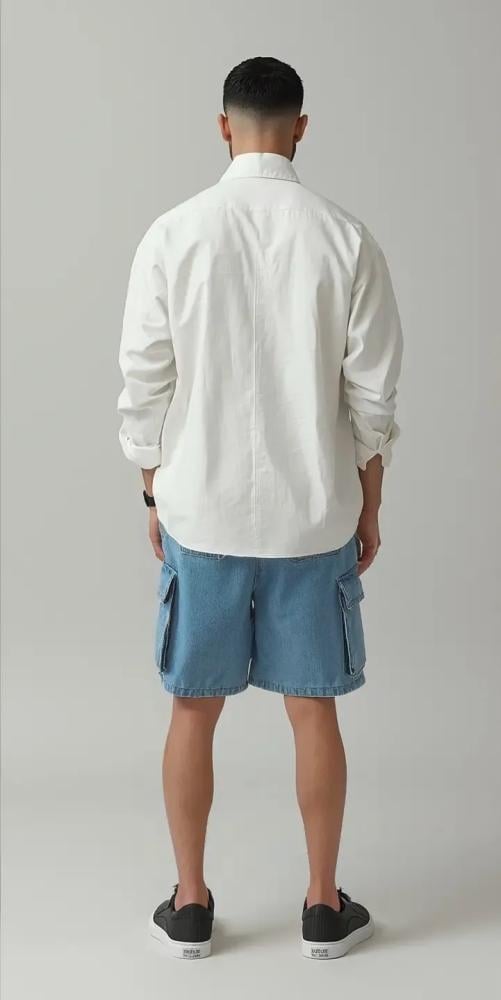شورت جنز واسع بتصميم أوفر سايز عصري يعطيك مظهر كاجوال مريح ومليان ستايل. يتميز بجيوب جانبية كبيرة تضيف لمسة عملية وشبابية، تقدر تلبسه مع تيشيرت سادة أو طبعة لإطلالة عصرية على الموضة.